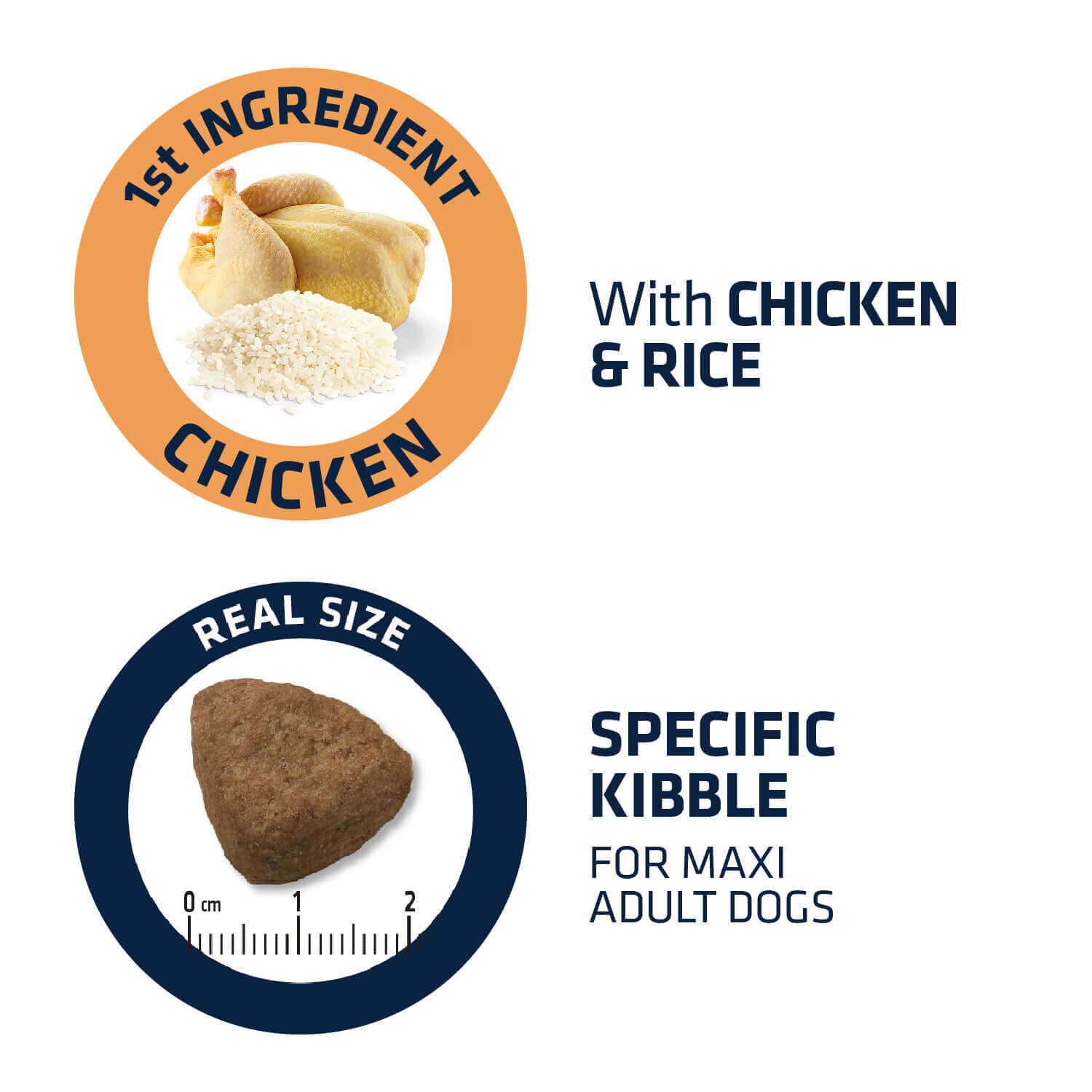 Samenstelling: Kip (15%), volkoren tarwe (14%0, gedehydreerde eiwitten van pluimvee, erwtenvezel, rijst (10%0, volkoren maïs, maïseiwit, gedehydreerde eiwitten van varken, gehydrolyseerde dierlijke eiwitten (gevogelte, varken, vis), bietenpulp (1,7%), maïsmeel, pluimveevet, tarwevoerbloem, maïszemelgrint, mineralen, visolie, chicorei-inuline (0,4%), plasma-eiwitten van varken (natuurlijke bron van immunoglobulines) (0,4%), glucosamine (400 mg/kg), chondroïtinesulfaat (340 mg/kg)
