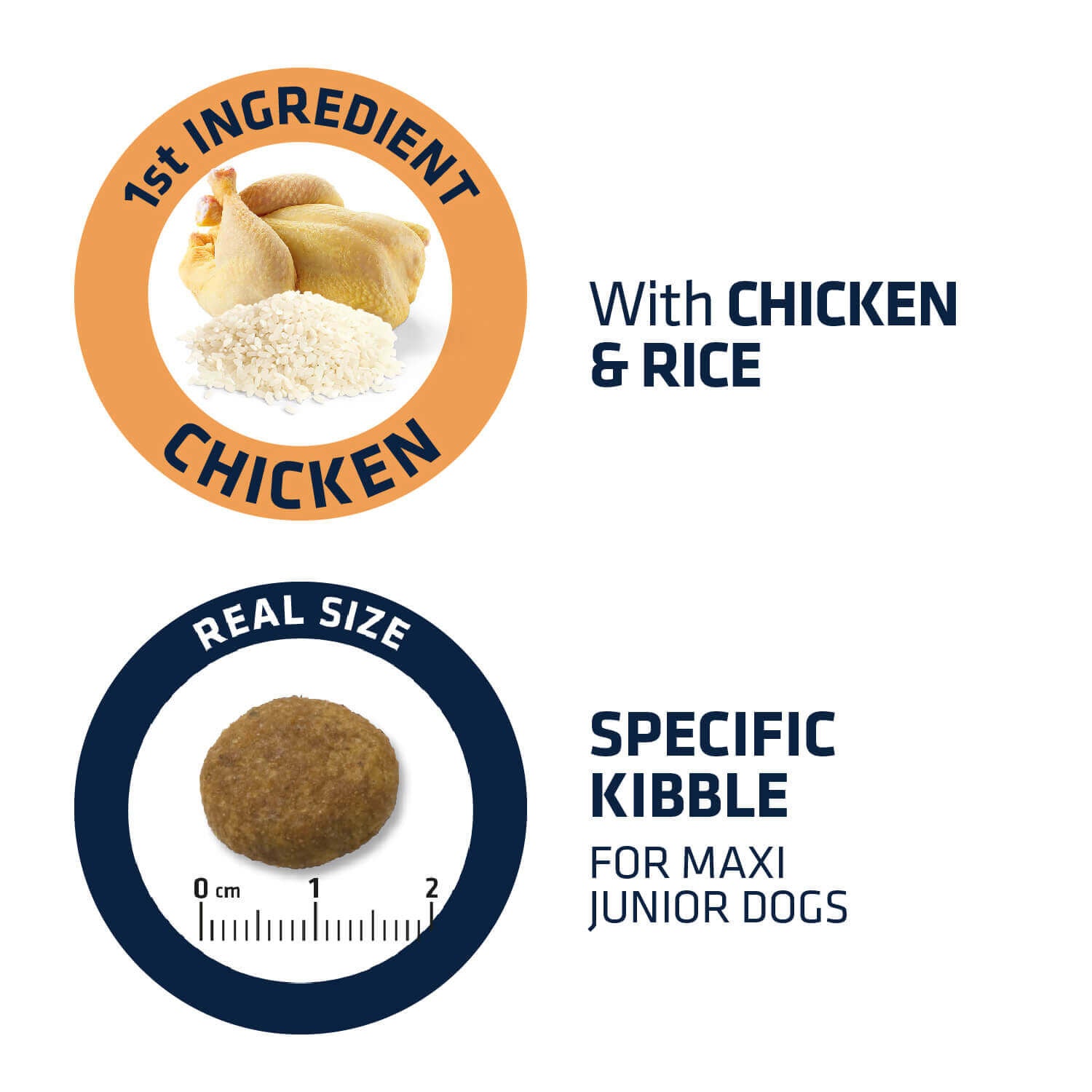 Advance Puppy Protect Maxi 12 kg is speciaal ontwikkeld om te voldoen aan de voedingsbehoefte van pups die als volwassen hond meer dan 30 kg wegen.