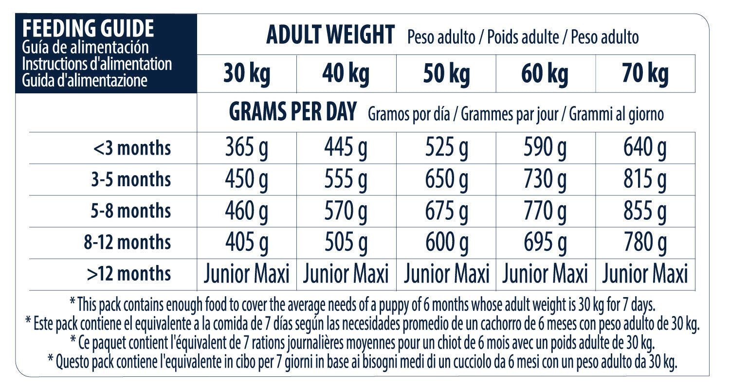 - Speciaal samengesteld voor pups van grote rassen (vanaf 30 kg volwassen gewicht)